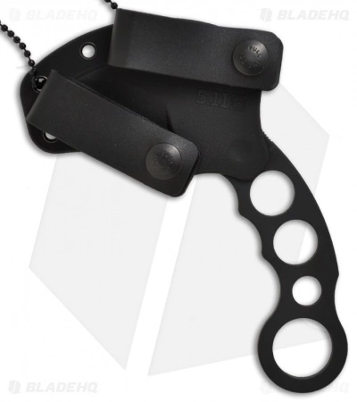 The Karambit Utility Blade is part of the 5.11 Tactical Tarani Series. It features a premium Crucible S30V full-tang karambit blade with a black Teflon finish. The skeletonized handle has a finger ring, grooves and spine jimping that combine for a secure grip. The kydex sheath features ambidextrous belt loops and a neck chain.