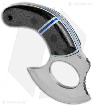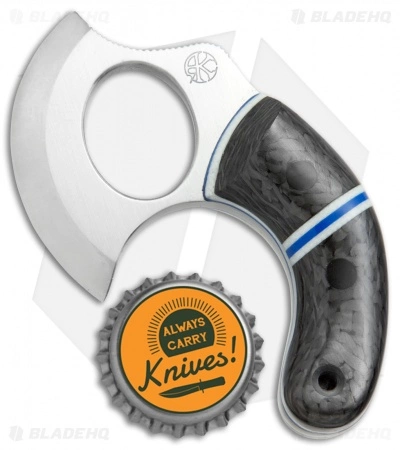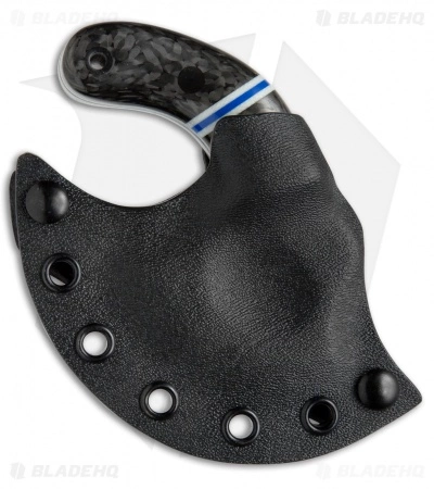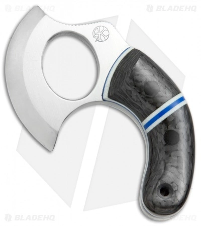 This Floki model is fitted with polished carbon fiber scales over blue and white liners.