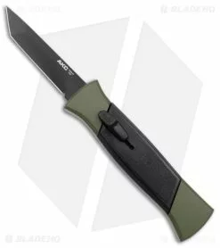 The AKC 777 Blackfinger is an Italian-made OTF knife with a double-action, automatic firing mechanism. It has a large aluminum handle that provides a solid feel and a comfortable grip for light duty cutting tasks. The blade is made from stainless steel with a stamped AKC logo. These come in a variety of blade and handle color options for every possible taste.