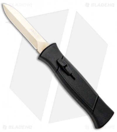 The AKC 777 Blackfinger is an Italian-made OTF knife with a double-action, automatic firing mechanism. It has a large aluminum handle that provides a solid feel and a comfortable grip for light duty cutting tasks. The blade is made from stainless steel with a stamped AKC logo. These come in a variety of blade and handle color options for every possible taste.