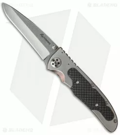 This collectible titanium folder from Allen Elishewitz offers a highly sophisticated design. It features a titanium handle frame with carbon fiber scales on either side. The blade is easily deployed with dual ambidextrous thumb studs and locks in place with a frame lock. A wide titanium pocket clip, custom pivot and red spacers finish off the design nicely.