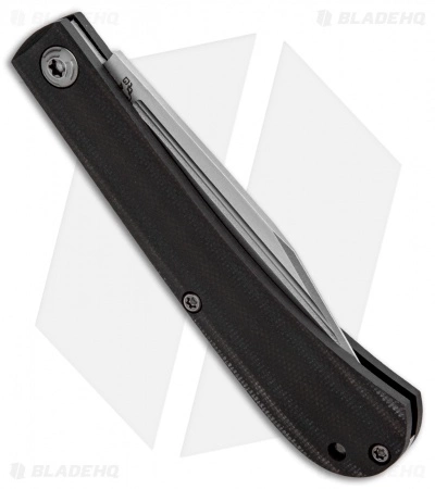 This custom Gator Tooth slip joint knife offers an impressive collaborative design from Gatorbud Knives and Alphahunter Tactical. It’s built with a slim black G-10 handle and an AEB-L stainless steel blade. Bronze anodized titanium hardware adds a nice custom touch to the Gator Tooth design. Item comes complete with a black custom leather pocket sheath.