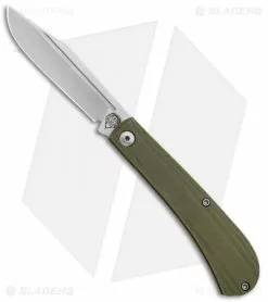 This custom Gator Tooth slip joint knife offers an impressive collaborative design from Gatorbud Knives and Alphahunter Tactical. It’s built with a slim OD green G-10 handle and an AEB-L stainless steel blade. A blade swedge and fuller groove add a nice custom touch to the Gator Tooth design. Item comes complete with a green custom leather pocket sheath.