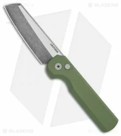 This Slimfoot Auto has a green anodized aluminum handle and a 2-tone acidwashed blade.