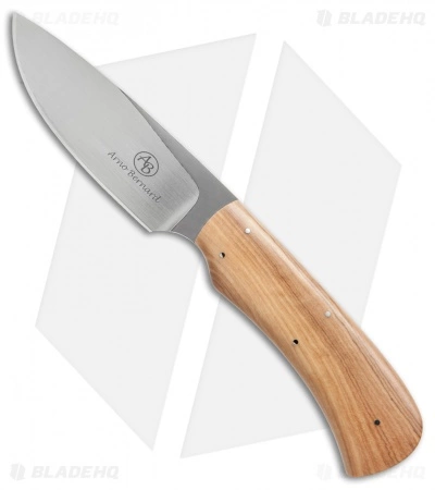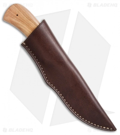 This Nyala knife from Arno Bernard Knives features a Wild Olive wood handle and a full, tapered tang N690 stainless steel blade with a satin finish. Includes a cape buffalo sheath.