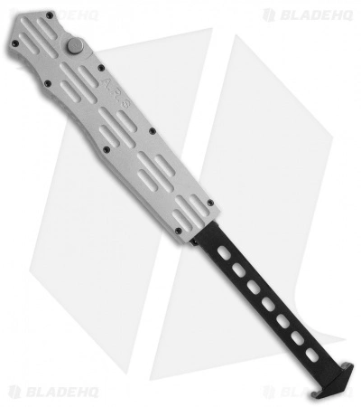 This is the 3rd Generation OTF from Alex Shunnarah of A.R.S. Knives. This single action out-the-front automatic knife features strong, precise action and the tightest lockup we’ve seen in an OTF. The aluminum handle is super thin with grooves along the faces. The stainless steel tanto blade is stonewash finished and is retracted using the pull bar.