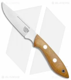 The Bark River Knives Adventurer II Knife features a compact, easy to carry design for everyday use. This model sports a natural canvas micarta handle with a thumb relief for use in a lateral hold while skinning or performing other hunting chores. Its full-tang, Elmax steel drop point blade holds a razor sharp edge that excels during fine work and heavier cutting tasks when necessary. Includes a brown leather sheath with a belt loop.