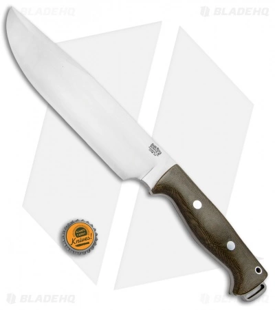 This Bravo Crusader model is outfitted with a green canvas micarta handle and a satin finished 3V steel blade. The Bark River Bravo Crusader is a full-size outdoor fixed blade built tough with an over 1/4″ thick full tang design. A convex ground blade provides versatile cutting performance for hunting applications. Item includes a premium leather belt sheath.