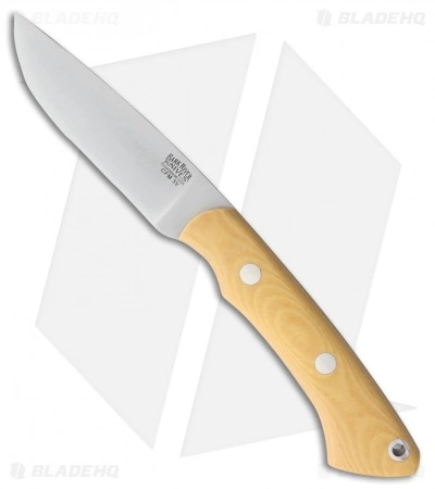 The Featherweight Fox River fixed blade knife with antique ivory micarta scales by Bark River Knives, is a must have for anyone who wants a lightweight camping/hunting knife without sacrificing durability, edge retention and comfort.