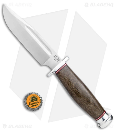 The Bark River Teddy is a hefty fixed blade knife for hunting and bushcraft. The Bowie-style A2 blade has good toughness and wear resistance so it can hold up against heavy use. The guard gives the Teddy a traditional Bowie knife appearance while protecting your fingers from any blowback as you hack and slash your way through the wild. A leather belt sheath makes this heavy-duty knife easy to carry on your belt through all your adventures.