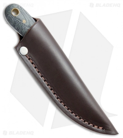 The Frontier First from Battle Horse Knives is a must-have for field dressing and skinning small game. This compact fixed blade is crafted with a hardy, full-tang blade made from O1 tool steel with a scandi grind for easy slicing. Though small, the rounded black bead blasted Micarta handle fits great in the hand and offers a comfortable grip through extended use. Includes a secure leather belt sheath.