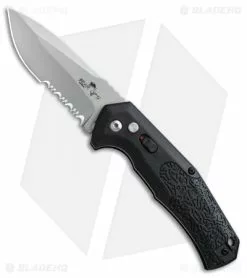 This Bear Ops AC-600 model sports a black GFN handle and a bead blasted blade with a partially serrated edge. The AC-600 series offers a compact automatic folding knife for everyday use and carry. A sliding safety on the front of the handle allows for safe carry and convenient blade activation. The GFN handle scales are set over stainless steel liners and textured for tactile grip. A stainless steel pocket clip completes the solid EDC package.