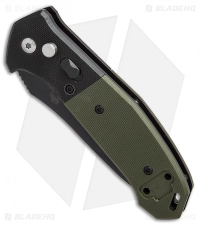The Bear OPS Mini Bold Action V delivers responsive, USA made automatic action in an affordable package. This model features a 3.25″ Sandvik stainless steel tanto blade with a black finish and jimping on the thumb ramp for added control. Its textured black/green G-10 scales offer a comfortable, secure grip while keeping carry weight on the lighter side. A sliding safety lock prevents misfiring, and allows safe storage. Includes a reversible stainless steel pocket clip for tip-up carry.