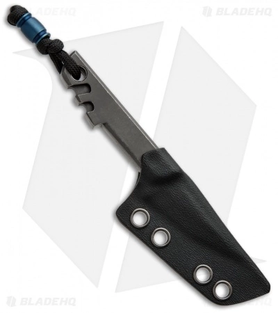 The Tanto blade of the Mini Slik can be used for a variety of cutting tasks. The blade is relatively strong with 4mm thickness but still has a thin blade tip. Lanyard features a blue titanium pearl. Includes a Kydex sheath.