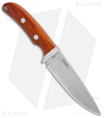 The Savannah from Boker Tree Brand is in an sturdy fixed blade knife. The smooth cocobolo handle gives seamlessly into a stonewashed Bohler N690 blade. The Savannah fits snugly in its stiff leather sheath. High quality materiel and high quality construction, combined with this knife’s sleek design, will doubtless leave you pleased.