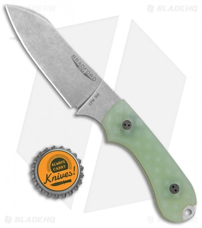 This Blade HQ Exclusive Bradford Guardian3 features a stonewash finished blade made of CPM-M4 steel and some textured ghost G-10 handle scales.