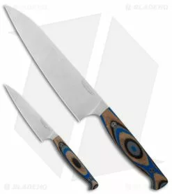 Bradford Knives is known for their high-quality, USA-made knives. Now they’re dipping their toes into the kitchen knife market with this top-notch chef’s knife and paring knife set. These culinary cutters are remarkably lightweight, with slender blades and handles that make them extremely wieldy and precise. The handle scales, slapped over full tangs, are textured to ensure a strong grip. The blade steel in question is AEB-L, a beloved steel with laudable toughness and edge retention that’s stain-resistant enough to function in the trying conditions found in a kitchen. If you’re a knife guy or gal who wants to be a kitchen knife guy or gal, then the Bradford Chef Knife and Paring Knife Set is what you need.