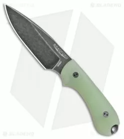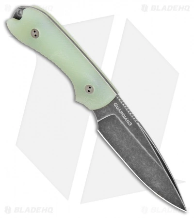 This Blade HQ Exclusive Guardian 3 model has a black stonewash finished blade with a false edge grind and 3D jade G10 handle scales.