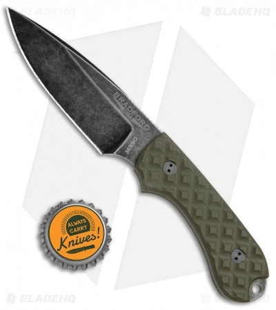 The Guardian3 is a relatively compact fixed blade that is designed to handle the work load that might typically fall upon a heavy duty everyday folder. Bradford Knives uses Bohler M390 steel with a double temper and cryo treatment for exceptional blade characteristics. Machined G-10 scales offer extreme grip without being abrasive. Each knife includes a premium leather sheath with belt loop and plastic blade insert.