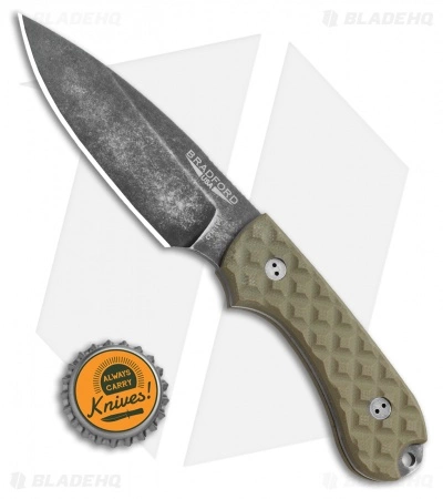 The Guardian3 is a relatively compact fixed blade that is designed to handle the work load that might typically fall upon a heavy duty everyday folder. Bradford Knives uses Bohler M390 steel with a double temper and cryo treatment for exceptional blade characteristics. Machined G-10 scales offer extreme grip without being abrasive. Each knife includes a premium leather sheath with belt loop and plastic blade insert.