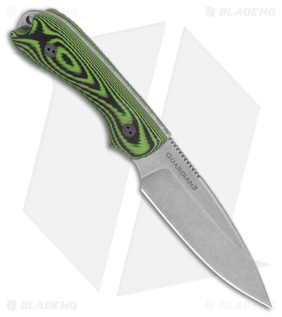 When you take this knife into your hand, you’ll have no doubt you’ve had the good fortune to acquire an excellent fixed blade. The updated Bradford Guardian3 has a gorgeous MagnaCut steel blade with Bradford’s signature grind quality, and the drop point is finished in a beautiful stonewash finish. The knife is compact, but super-strong with its full tang construction, weather-proof scales, and pommel crusher. The shaping in the handle and choil, and the heavy jimping on the spine, make choking up on it comfortable and convenient. The piece is strong and sure without weighing too much. Each knife includes a premium leather sheath with belt loop and plastic blade insert.