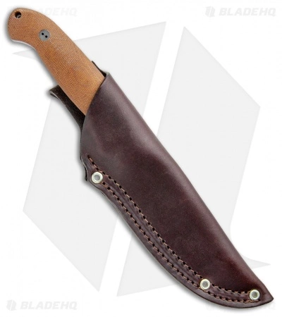 - Vertical carry leather belt sheath with plastic insert for proper blade alignment.