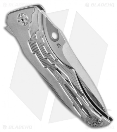 We’re fascinated by Brian Tighe’s designs and the Tighe Zip flipper is no exception. This custom Tighe Zip folder has a 4-step milled titanium handle with a button lock and machined backspacer. The blade is compound ground with a stonewashed, mirror polished finish and is marked #5 on the back side. Direct from the maker.