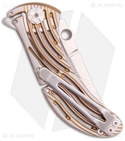 The Tighenee Rod is a smaller version of the Tighe Rod knife. It utilizes Glenn Klecker’s NIRK locking mechanism, which allows the lock back to be an integrated part of the handle design. The handle is titanium with bronze anodized recesses. The stainless steel pocket clip is right hand tip-up carry. This Tighe Rod folder has a fluted stainless steel blade with flipper and thumb hole. The blade has an upswept tip and false upper edge. Comes in a padded nylon pouch.