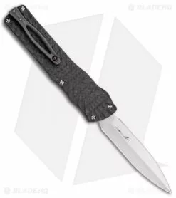 This custom Twist Tighe OTF offers a stunning Brian Tighe design with a 3D machined aluminum and carbon fiber handle. The hand-satin finished RWL-34 steel blade comes in a dagger style with a plain edge. Item includes a titanium pocket clip and a carbon fiber thumb slide. Add an instant upgrade to your knife collection with the Brian Tighe Custom OTF.