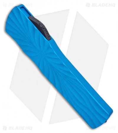 This Twist Tighe OTF knife is built with a blue ceramic coated aluminum handle and a DLC coated dagger blade. Brian Tighe has applied his popular custom Twist Tighe design to a high performance OTF automatic knife. It’s built with a sculpted aluminum handle, OD green firing button, and an S35VN steel blade. A double-action firing mechanism deploys and retracts the blade with smooth satisfaction. Item includes a pocket clip for secure carry.