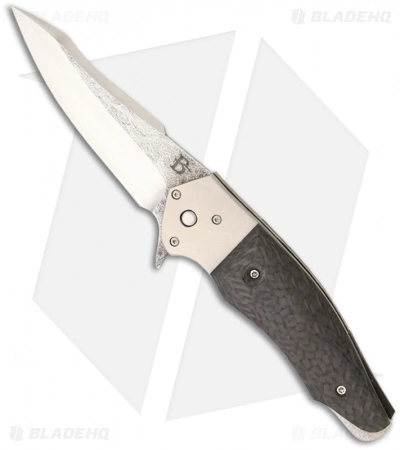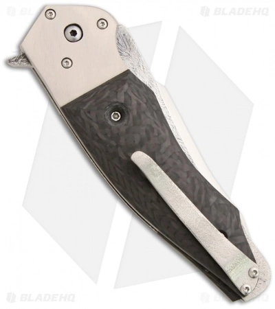 This Tactical Folder is a premium knife from David Broadwell. It has a hand rubbed satin CPM-154 steel blade with stylishly textured flats. The blade is deployed quickly with the flipper and effortlessly thanks to the ball bearing pivot. The handle is outfitted with 2×2 twill carbon fiber scales, back spacer/tail and CP titanium bolsters. The liners are 6Al4V titanium, as is the ice textured pocket clip.