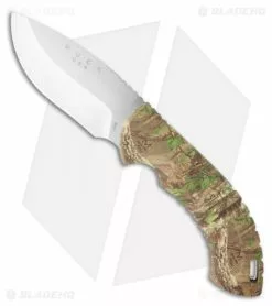 The Omni Hunter 10PT RealTree Xtra Green Camo fixed blade from Buck is compact, ergonomic design that makes a terrific hunting knife. The full-tang blade features a rubberized thermoplastic handle with grip ridges for easy handling and a hole for lanyard attachment. The drop point blade has a plain edge and wide profile to stand up to demanding work. The Omni Hunter comes with a heavy duty nylon sheath.