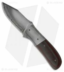 This First Responder folding knife features a 416/Twist Damascus San Mai steel clip point blade and bolsters. The blade opens with the thumb stud opener on front and the back side is stamped “Burr Oak Nevling”. The handle features layered carbon fiber and red G10 scales over titanium liners, with lock tab. The pocket clip is also titanium with a matching blue anodized finish. The steel back spacer is filed, along with the liners and blade spine. This knife comes with a signed certificate of authenticity, dated 5/9/13.