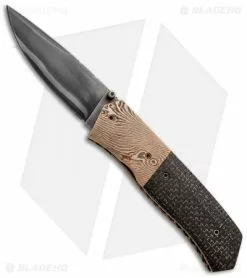 This Splinter folder has a 416/52100 San Mai Damascus steel drop point blade. The blade opens with the thumb stud opener on front and the back side is stamped “Burr Oak Nevling”. The handle features Mokume bolsters and lightning strike carbon fiber scales. Filed titanium liners, steel back spacer, and blade spine. This knife comes with a signed certificate of authenticity, dated 11/21/13.