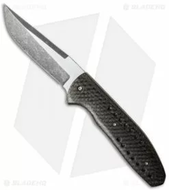 This Accentor Flipper has a lightweight, comfortable feel in hand. The handle has lightning strike carbon fiber scales over titanium liners with standoffs for an open build. The zirconium pocket clip follows the drilled motif of the handle. Two-tone stainless steel Bowie style blade with acid washed grinds and satin flats. Flipper opener and proper detent make blade deployment a delightful experience. This is yet another excellent handmade custom knife from Chuck Gedraitis.