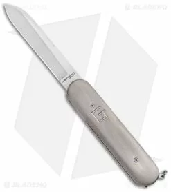 The Chuck Gedraitis Swiss Army Switchblade Automatic Knife is all the name implies and more! Simply slide back the front handle scale with the “G.” The scale will pivot slightly before releasing the blade. Once opened, the blade is held in place with a liner lock. This knife is equipped with some of the best materials on the market: titanium liners and spring and a CPM 154 blade for ease of sharpening and long edge retention. The Swiss Army Switchblade Automatic Knife is small and simple yet unique and exciting, all while maintaining its functionality and clean, classic look. It features a removable toothpick and tweezers that are concealed within the scales. A lanyard ring is also provided for customizing and EDC.