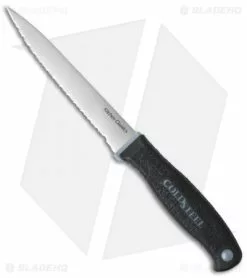This model has a 8″ steak knife blade. The Cold Steel Kitchen Classics series feature high performance ice tempered, cryo-quenched and precision flat ground 400 series steel blades for exceptional cutting performance. All models in the series come with a razor sharp edge that lasts and lasts, and some have serrated edges uniquely appropriate to the tasks they were designed to do.