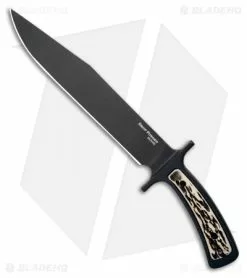 - Simulated stag handle scales over full-tang construction.