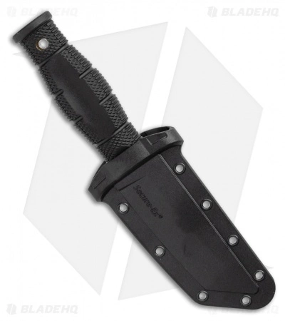 The Cold Steel Mini Leatherneck is reminiscent of the combat and utility knives carried in the wars of the twentieth century, but it’s small enough to be carried every day, or concealed as a last ditch tool. The blade is made from 8Cr13MoV stainless steel, and the Kraton handle provides a secure grip in any condition. This model has a tanto blade.