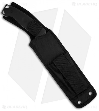 makes just about everything else on the market seem a little less manly. The cleaver blade measures over 9″ long and 2.25″ across with hollow ground bevels on the primary edge and flat tip. The blade is Blackstone® coated 5160 steel with the Combat Ready logo on front and the CUMA logo on back. The full-tang handle is fitted with black G10 scales that are sized and machined to provide an ideal interface between you and the Battle Cleaver. The handle has a fire-drill hole on both sides and twin-triangle lanyard holes. This knife comes with a drop-down leg holster with stability straps.