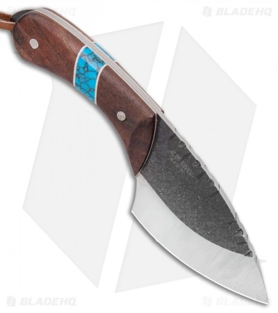 The Blue River Skinner is a stylish and highly functional hunting knife. It’s broad sweeping blade makes easy work of hides and meat, and it’s walnut and turquoise handle, leather lanyard, spine file work, and engraved pins all give it a classic and attractive aesthetic. Comes with a premium leather sheath.