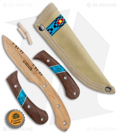 The Condor Blue River Wooden Knife Kit is easily assembled that yields a full-scale model of the Condor Blue River fixed blade knife. It is just like the real thing but has a wooden blade. The walnut handle scales have reconstituted turquoise stone inlays and the sheath is tan nylon. The Condor Blue River Wooden Knife Kit is excellent for teaching about knives.