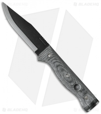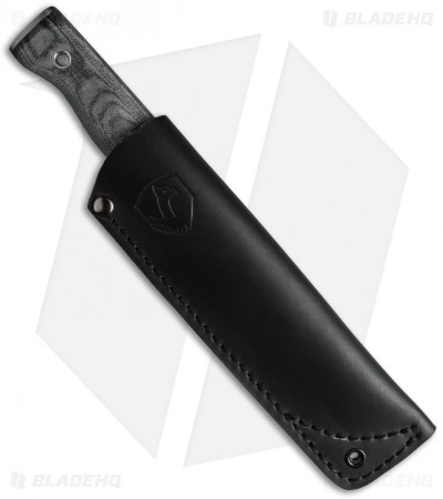 Make your way through the backwoods with the Final Frontier fixed blade. The 1075 high carbon steel clip point blade is black coated and has a satin Scandi ground cutting edge. Thick Micarta scales are fastened with barrel pins to the full-tang blade, which is capped by a flat stainless steel pommel. Adding to its resume, the Final Frontier has a bow drill pivot machined into the front scale and a leather sheath comes standard.