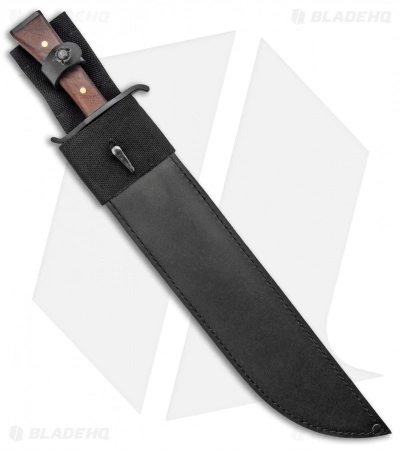 - Black leather sheath with a nylon belt attachment.