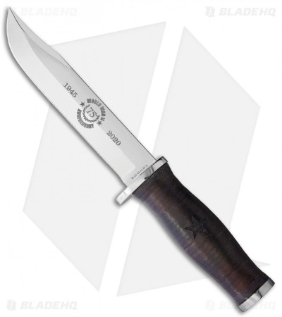 Based on the classic fighting and utility knives used by allied forces in WWII, this comemorative bowie knife is emblazoned with insignia celebrating the 75th anniversary of the end of World War II. Own a piece of history with this knife!