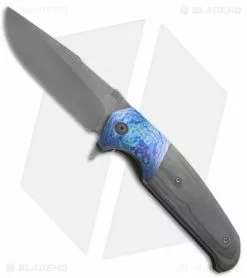 We scored this exquisite custom Whiskey 2 knife from Bill Coye at the 2014 BLADE Show. It has a polished carbon fiber handle with Timascus bolster and a titanium frame lock. The blade is acid washed N690 steel. Includes a heat colored titanium pocket clip.