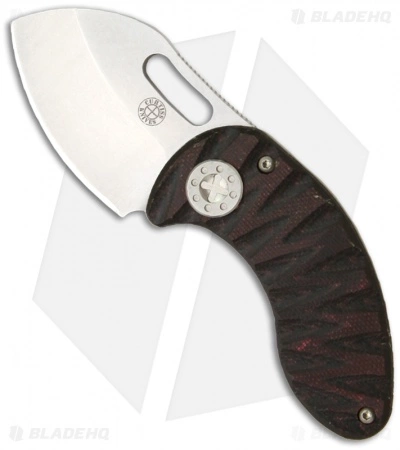 The Nano Framelock from Curtiss Knives is a small knife that scores big with performance and looks. It features a titanium framelock with an open build and CNC machined black/red G-10 handle. The new over-sized pivot acts as a lockbar stabilizer. The blade is CPM-154 steel with a thumb slot for opening. The spine of the blade has jimping and the curved handle has an excellent feel in hand. The Nano has a tip-up carry pocket clip and comes in a padded nylon pouch.