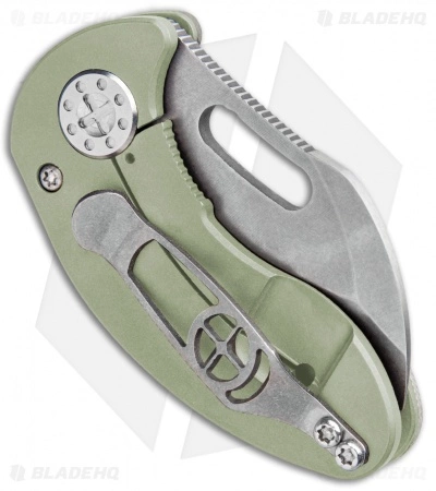 The Nano Framelock from Curtiss Knives is a small knife that scores big with performance and looks. It features a green anodized titanium frame lock with an open build and CNC machined OD green G-10 handle scale. The over-sized pivot acts as a lockbar over travel stop. The blade is CPM-154 steel with a thumb slot for opening. The spine of the blade has jimping and the curved handle has an excellent feel in hand. The Nano has a tip-up carry pocket clip and comes in a padded nylon pouch.