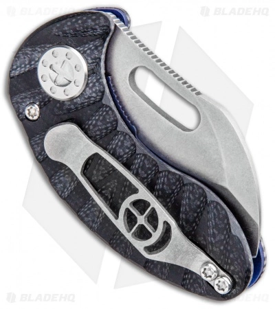 The Nano Linerlock from Curtiss Knives is a small knife that scores big points for its performance, good looks, and high-quality build. It features a blue titanium liner lock frame with an open build and CNC machined black G-10 scales. The blade is CPM-154 steel with a thumb slot for opening. The spine of the blade has jimping and the curved handle has an excellent feel in hand. Includes a titanium pocket clip.