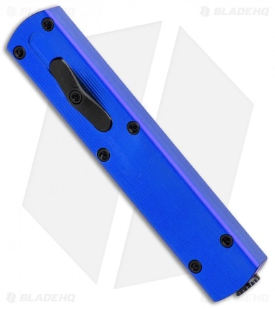 Add a sleek and compact OTF auto to your rotation with the Zulu Spear from D Rocket Designs. This model sports a textured blue aluminum handle with black hardware and a black finished dagger blade. It offers powerful double-action deployment with a front loaded thumb slide. The unique handle texture provides a sure grip in hand, and features a pocket clip for convenient carry!